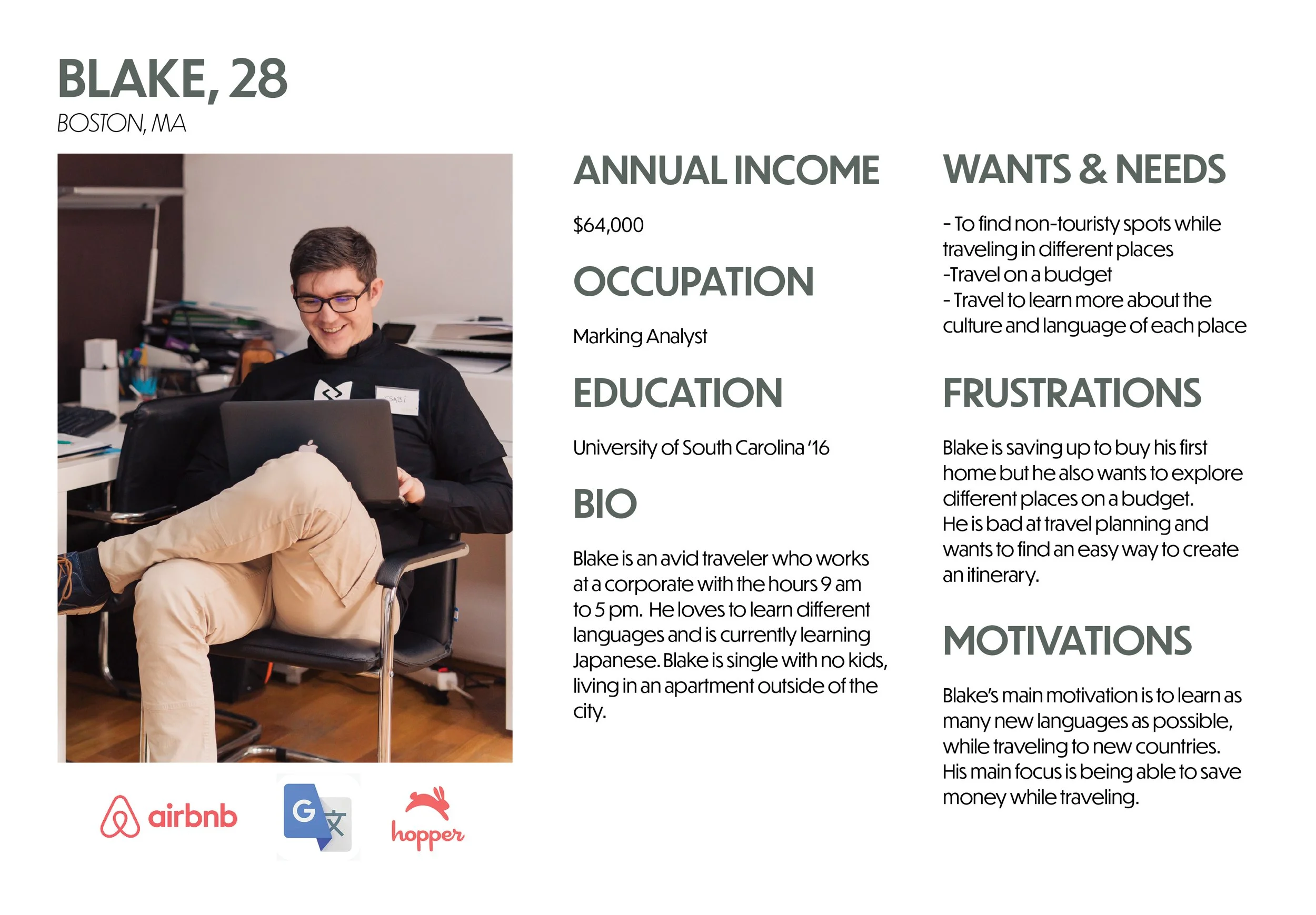 Navigo is a mobile app that plans your travel trips for you. Through a short questionnaire, the user will have access to multiple travel itineraries and may choose any of them to use for their next trip. The app also helps plan other travel aspects such as transportation, hotels, restaurants, and activities. The main audience is young adults, especially those who want to travel on a budget.